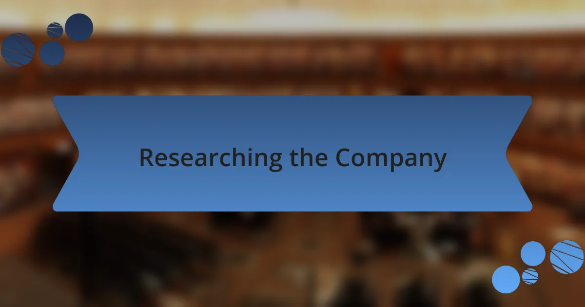 Researching the company isn’t just about skimming their website; it’s about delving into what makes them tick. I recall a time when I stumbled upon a blog post that highlighted their recent project on sustainability. It was fascinating to learn how they integrated eco-friendly practices into their products. This insight became a wonderful conversation starter during my interview, allowing me to express genuine interest in their initiatives. Have you ever noticed how a shared value can create an immediate connection?